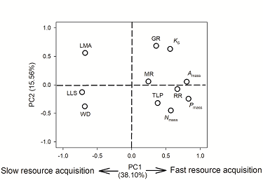 功能性状是植物应对环境变化响应和适应的核心植物属性,是预测生态系统响应和适应全球气候变化的重要研究手段。通过植物功能性状探讨物种生长策略和存活机制及其对全球变化的响应与适应,是森林生态学的研究热点。植物生活史包括植物的生长、死亡和补员等,密切影响物种适合度、森林生产力、物种多样性和森林碳固存。由于植物生活史内在的联系,以及功能性状与植物生活史之间的关联性在很大程度上仍然未知,因此,预测全球变化下森林群落的结构和动态具有相当大的挑战性。