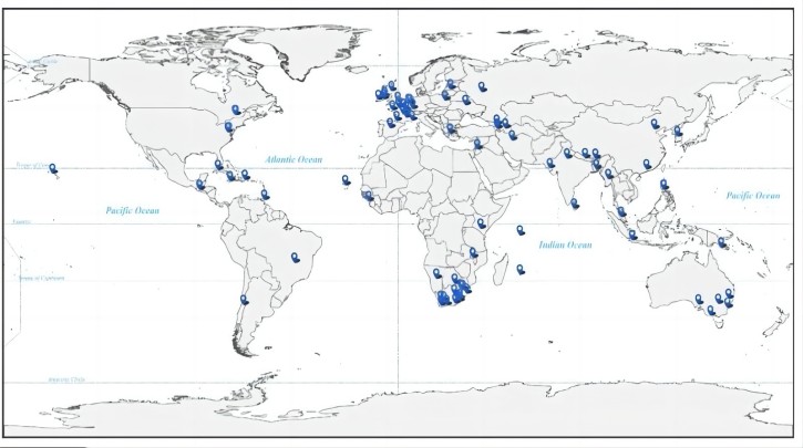 现代植物园起源于文艺复兴时期的欧洲,经历了药用植物收集及与教学、经济植物开发、市政园林植物展示、植物保护与自然教育等功能变迁,促进了植物学的发展和经济植物的开发利用。目前全球有3755个植物园迁地保护了全球1/3的高等植物和41%的珍稀濒危植物。现在全球有43个国家建立了80多个国家植物园(图1)。2021年10月12日中国国家主席习近平在《生物多样性公约》第十五次缔约方大会领导人峰会上宣布:本着统筹就地保护与迁地保护相结合的原则,启动北京、广州等国家植物园体系建设。2021年12月28日和2022年5月30日,中国国务院分别批复同意在北京建设国家植物园,在广东省广州市设立华南国家植物园。下一步,中国将综合考虑主要气候带和植被类型、生物多样性热点地区、现有植物园的综合实力、区域可持续发展状况、以及地方政府的支持强度,在保证植物园标准的基础上,按照国家代表性、保护有效性、社会公益性和管理可行性,遴选一批国家植物园,按照“科学的内涵、艺术的外貌、文化的底蕴、国际的标准和中国的特色”进行建设,形成中国的国家植物园体系。至2050年能实现50%以上中国本土植物、85%以上国家重点保护物种迁地保护,同时提升相应的科学研究、自然教育和资源利用水平。